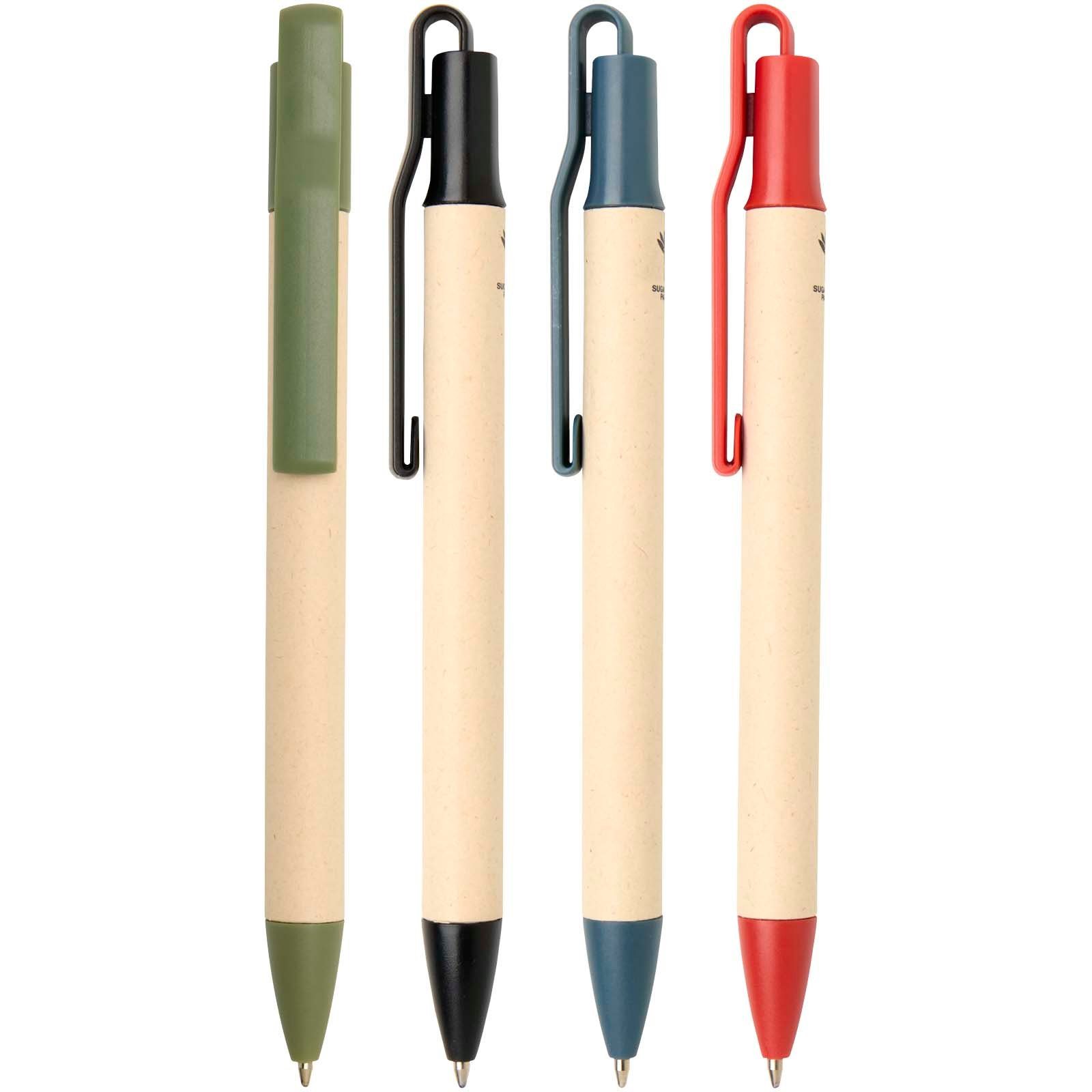 Stylo à bille rétractable Liliana en papier de canne à sucre. Couleur d’encre du stylo : Bleue. Taille de la plume : 1,00 mm. Longueur d’écriture : 1000 mètres.