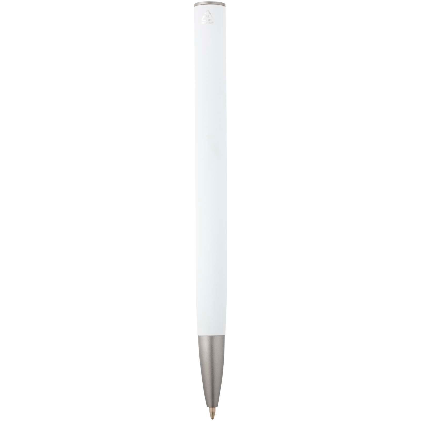 Stylo bille avec un corps en aluminium recyclé et un clip argenté en plastique ABS. Couleur de l’encre : Bleue. Longueur d’écriture : 800 mètres. Taille de la plume : 1,0 mm.