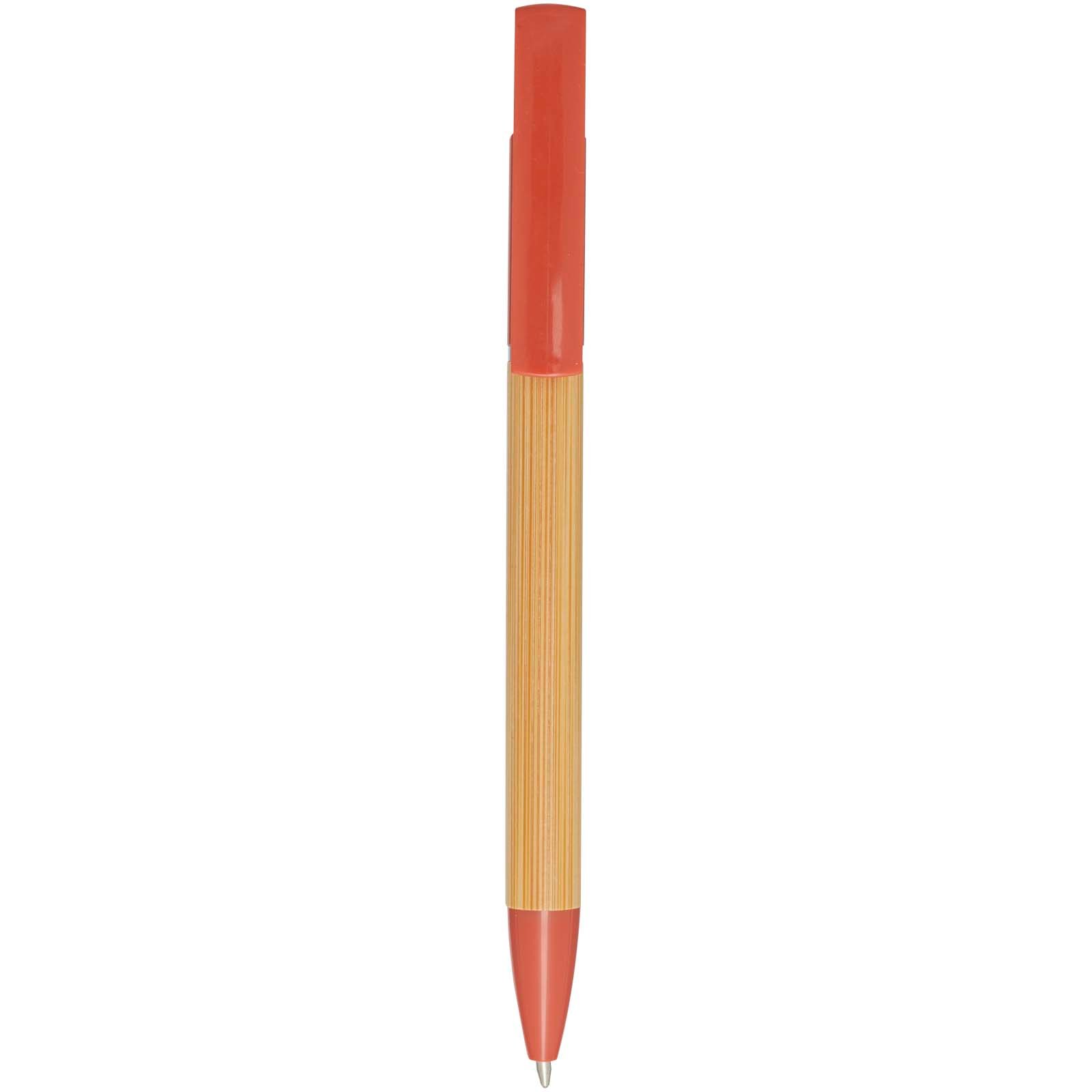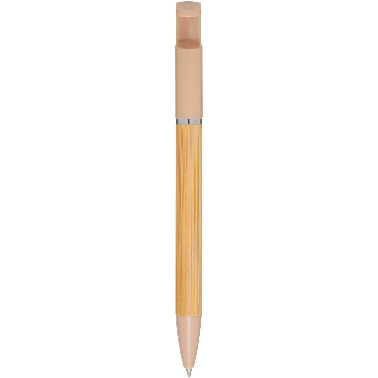 Stylo bille en bambou qui sert également de support pour téléphone. Le bouton et l’anneau central sont en plastique recyclé, la pointe est en laiton, et le corps est en bambou d’origine responsable. Couleur de l’encre : Noire. Longueur d’écriture : 1 000 mètres. Taille de la plume : 1 mm.