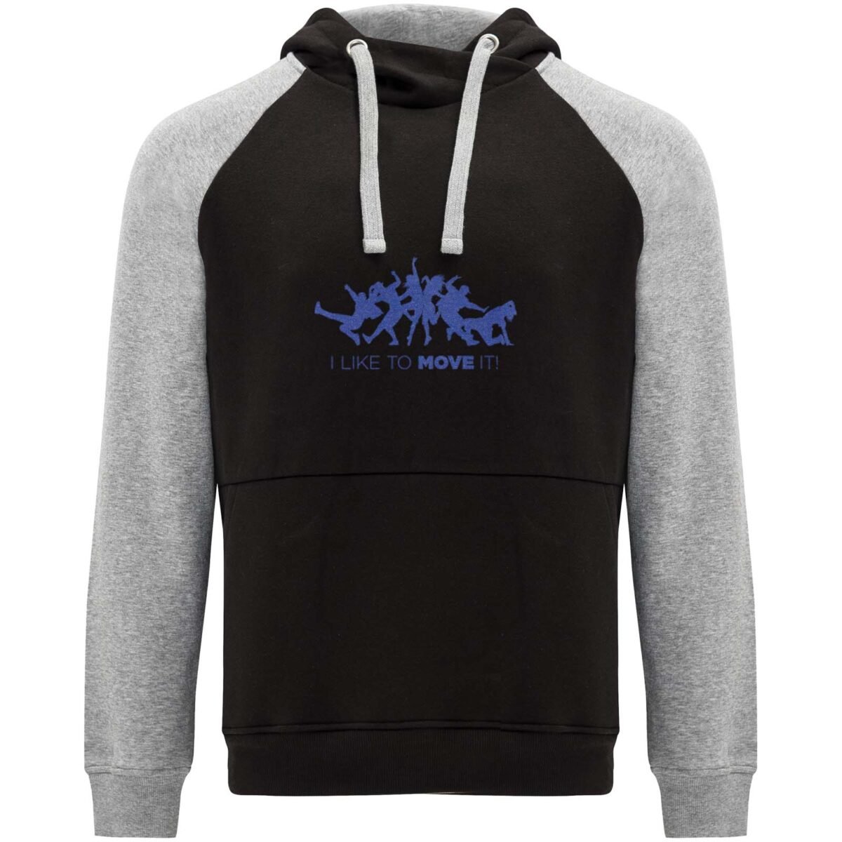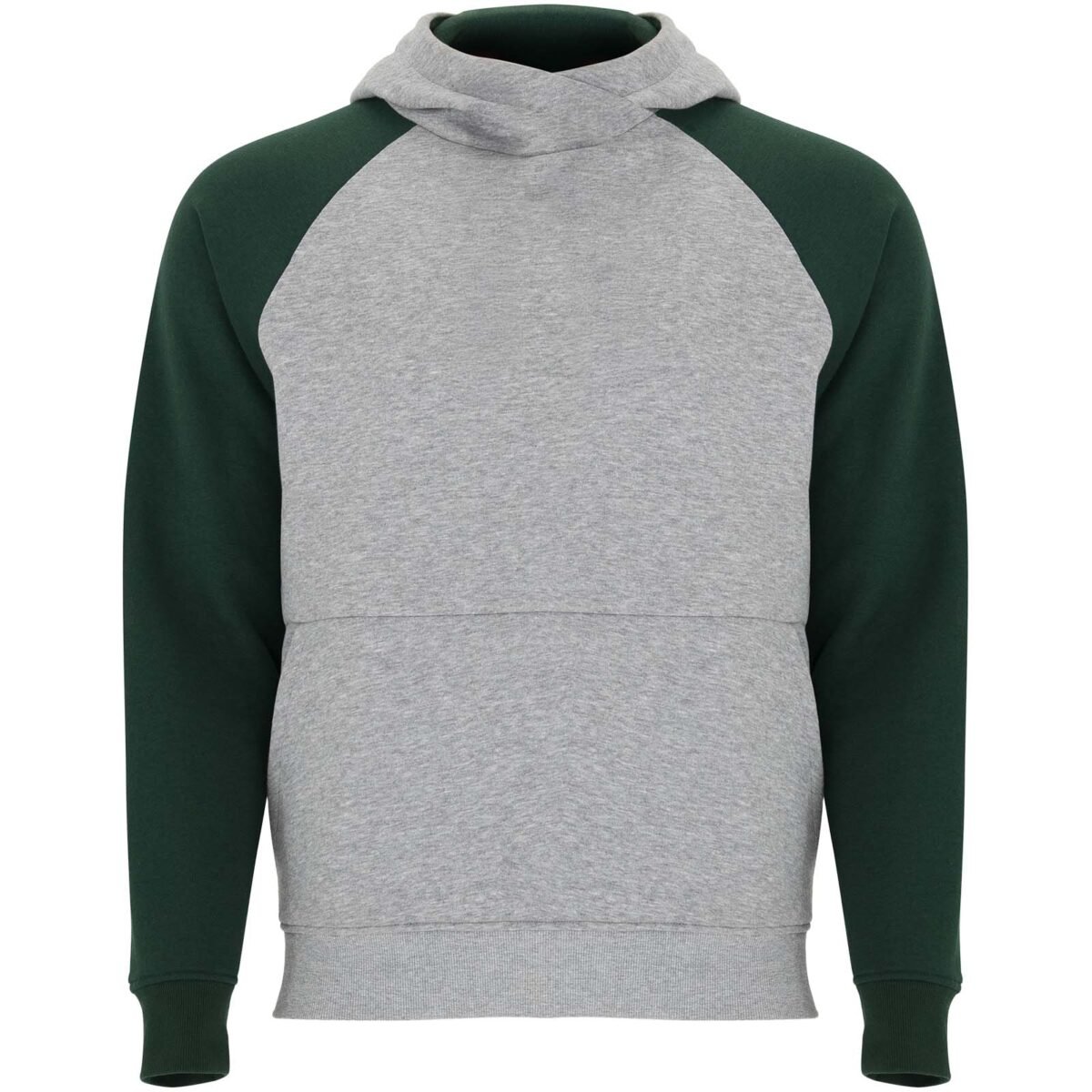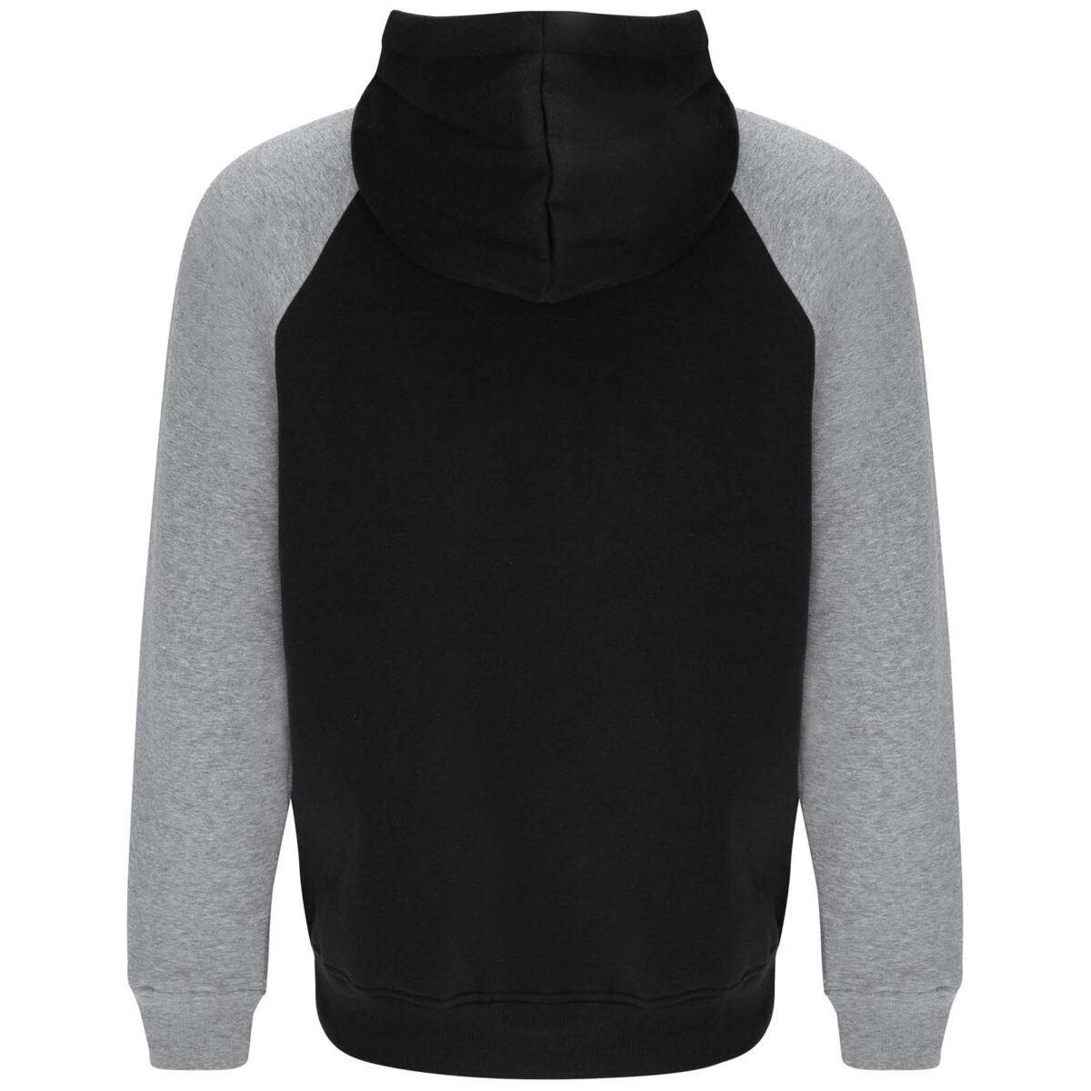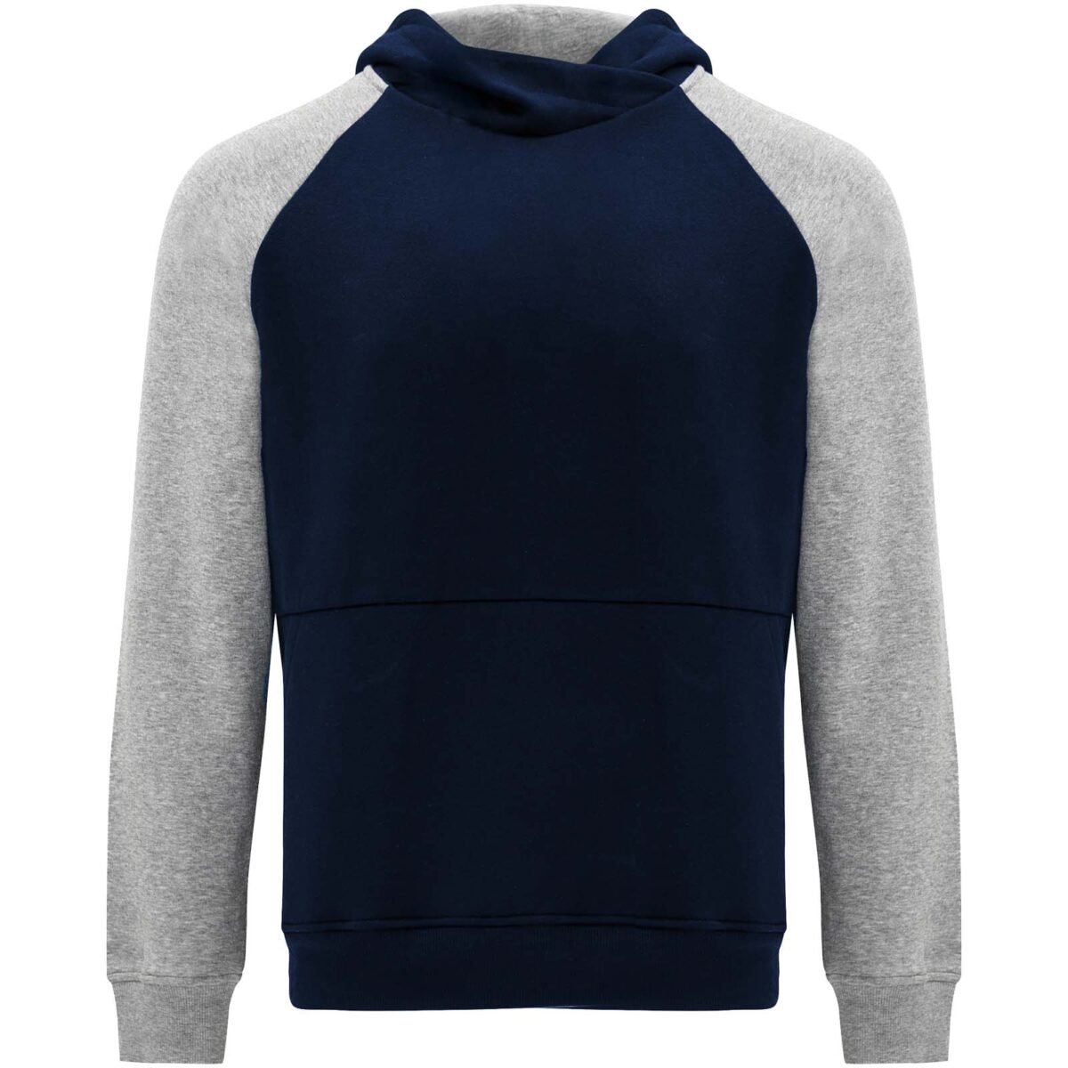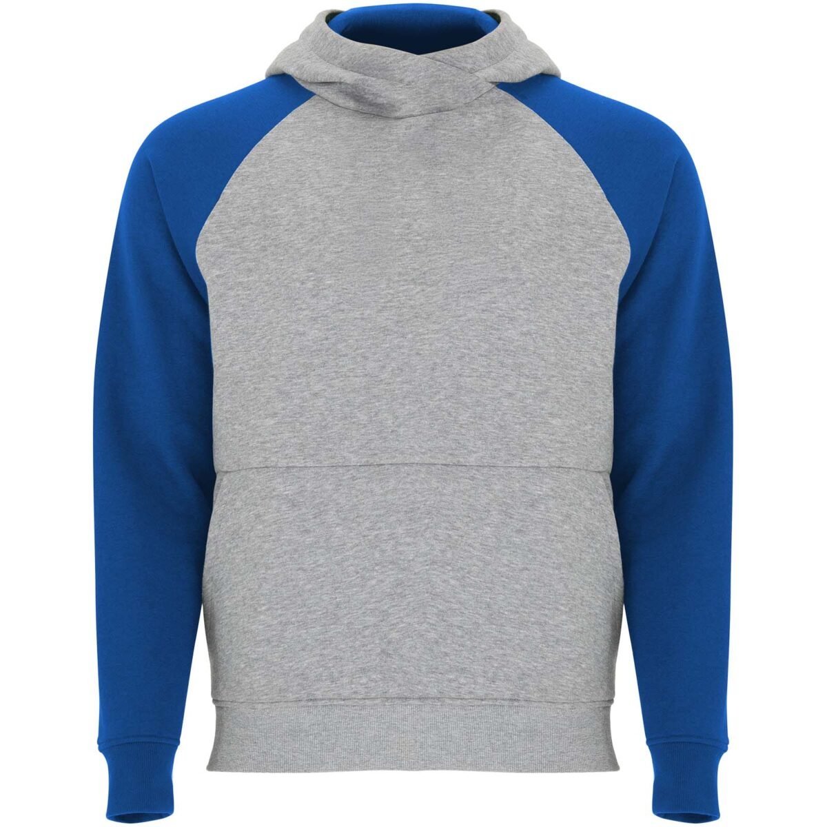Sweat à capuche unisexe bicolore. Capuche avec col croisé et œillets métalliques. Capuche intérieure contrastée, cordon de serrage et manches raglan. Poche kangourou. Poignets et bas en côte avec élasthanne 1×1. Étiquette détachable.