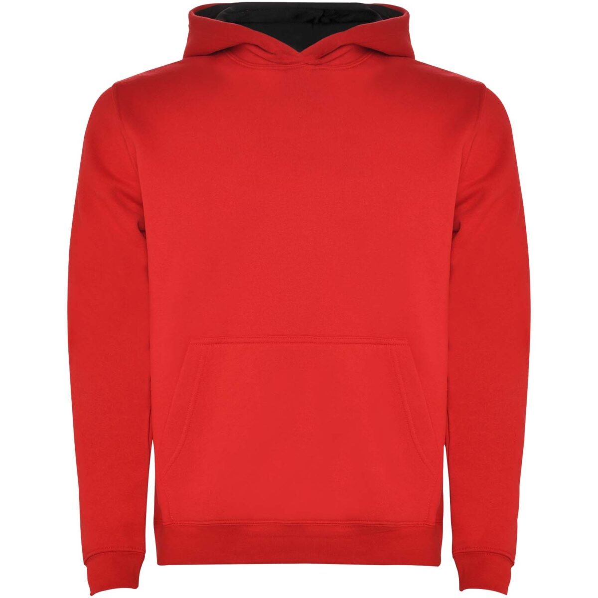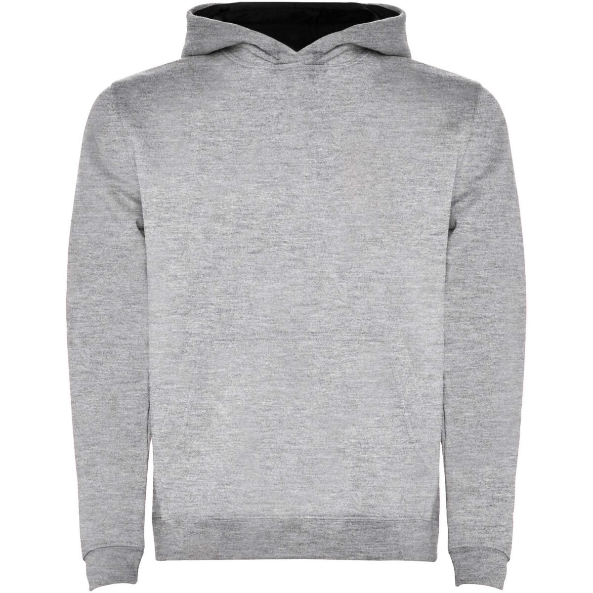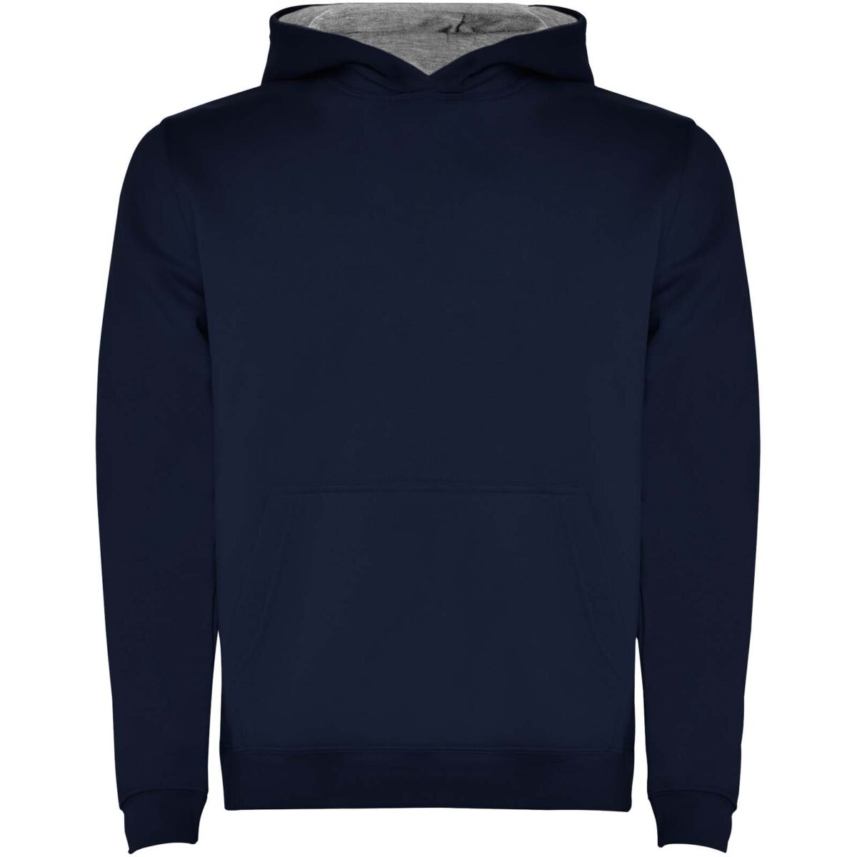 Sweat à capuche bicolore avec double tissu. Coutures recouvertes renforcées au col et poche style kangourou. Côte 1×1 élasthanne aux poignets et à la taille. Étiquette détachable. Le mannequin mesure 120 cm et porte la taille 5/6.