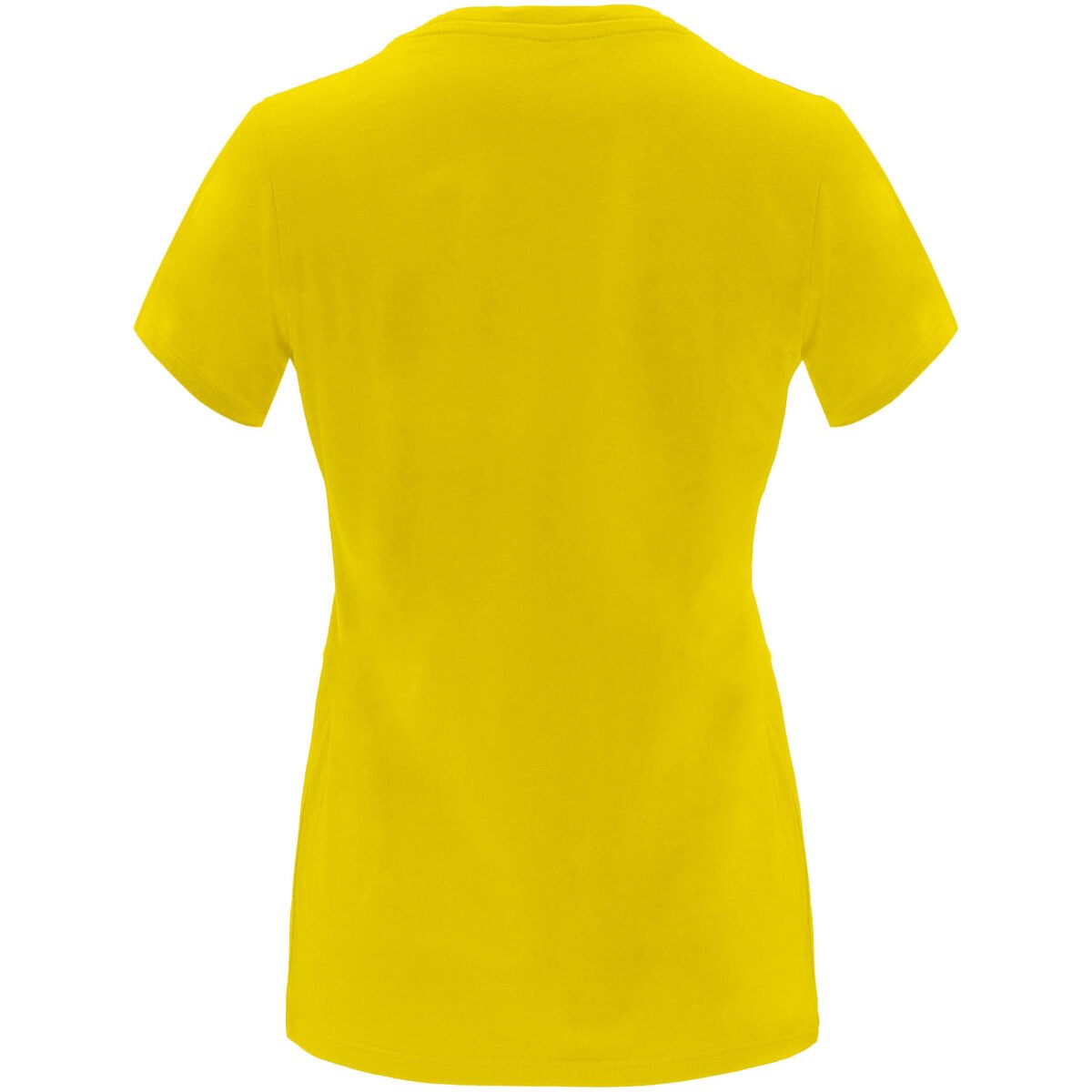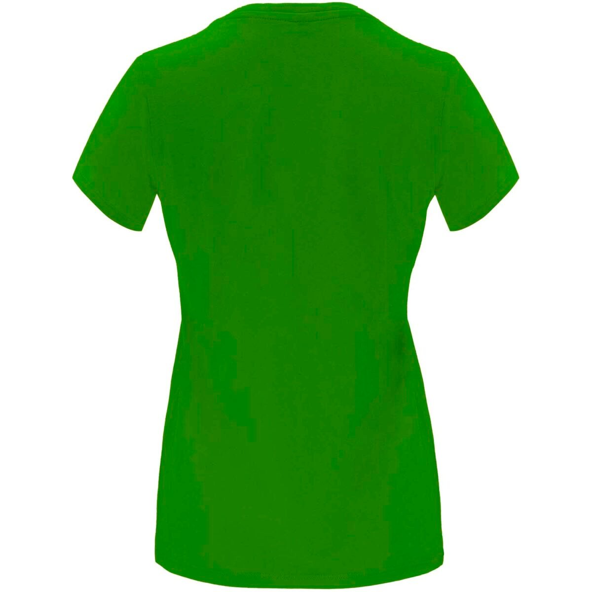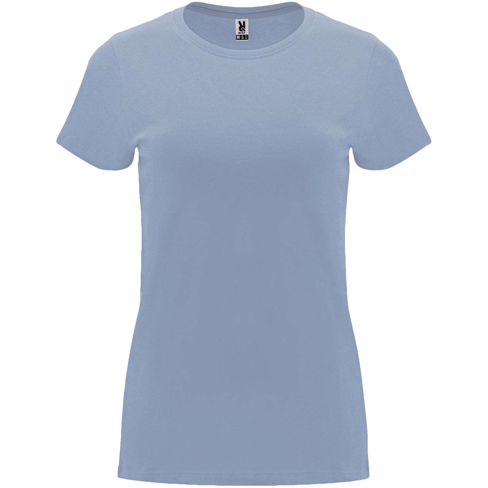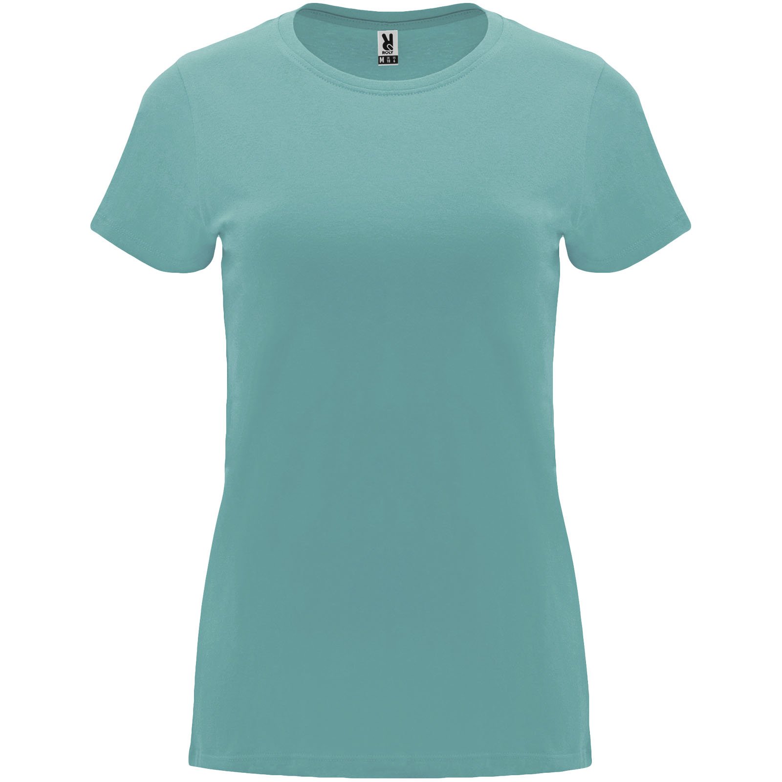 T-shirt ajusté à manches courtes pour femme. Col rond côtelé 1×1. Coutures recouvertes renforcées au col. Étiquette détachable.
