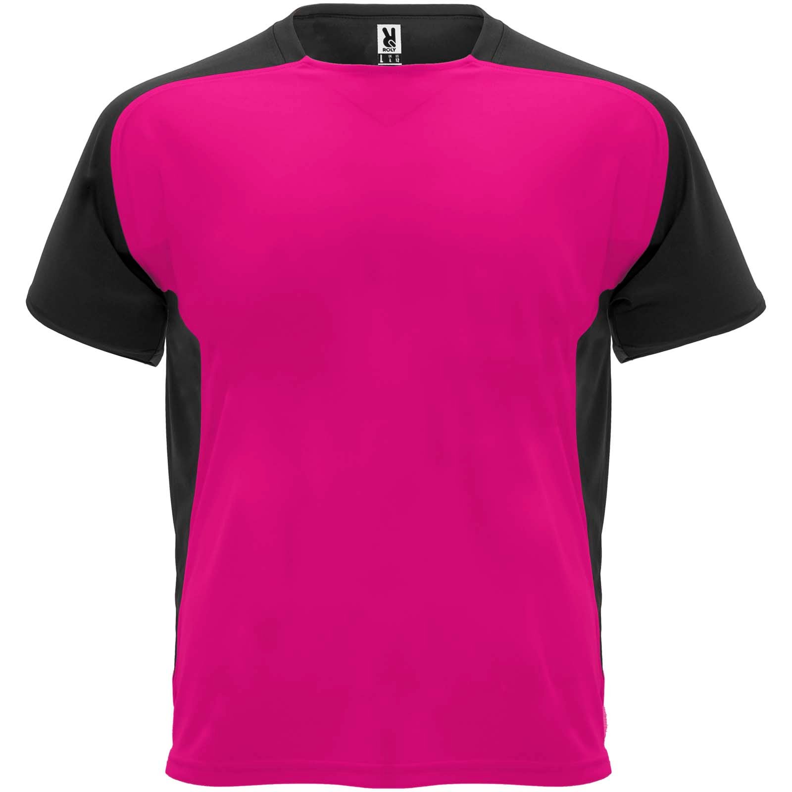 Tissu technique et respirant. Col ras-du-cou avec surpiqûres assorties. Manches raglan et panneaux latéraux contrastés. Étiquette détachable.