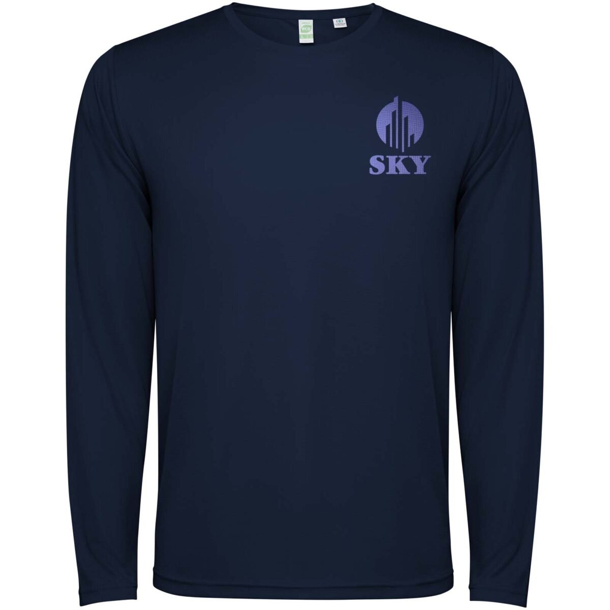 T-shirt technique unisexe à manches longues pour enfant. Col avec coutures assorties. L’ourlet du dos est légèrement plus long que celui du devant. Coutures latérales décalées vers l’avant.