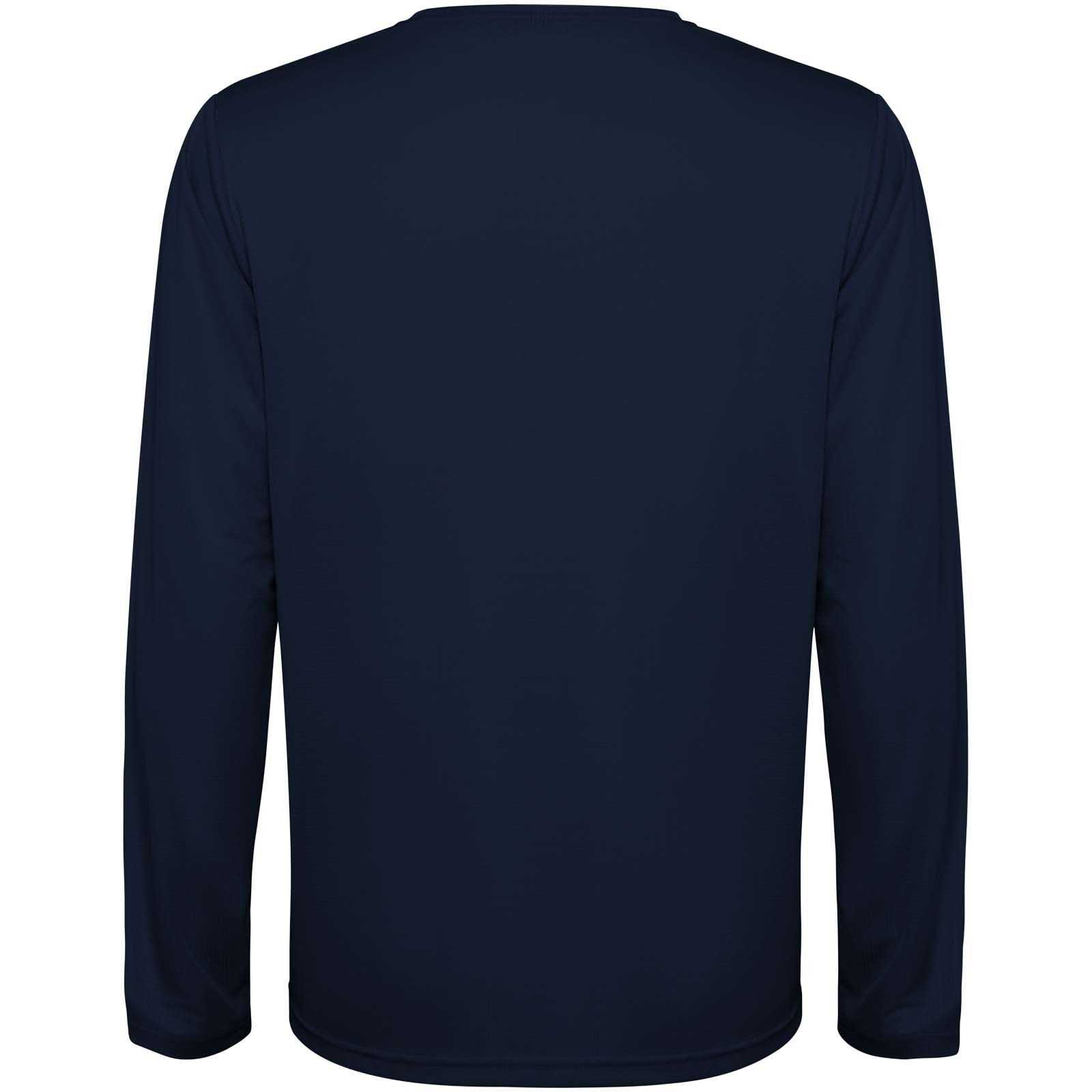 T-shirt technique unisexe à manches longues pour enfant. Col avec coutures assorties. L’ourlet du dos est légèrement plus long que celui du devant. Coutures latérales décalées vers l’avant.