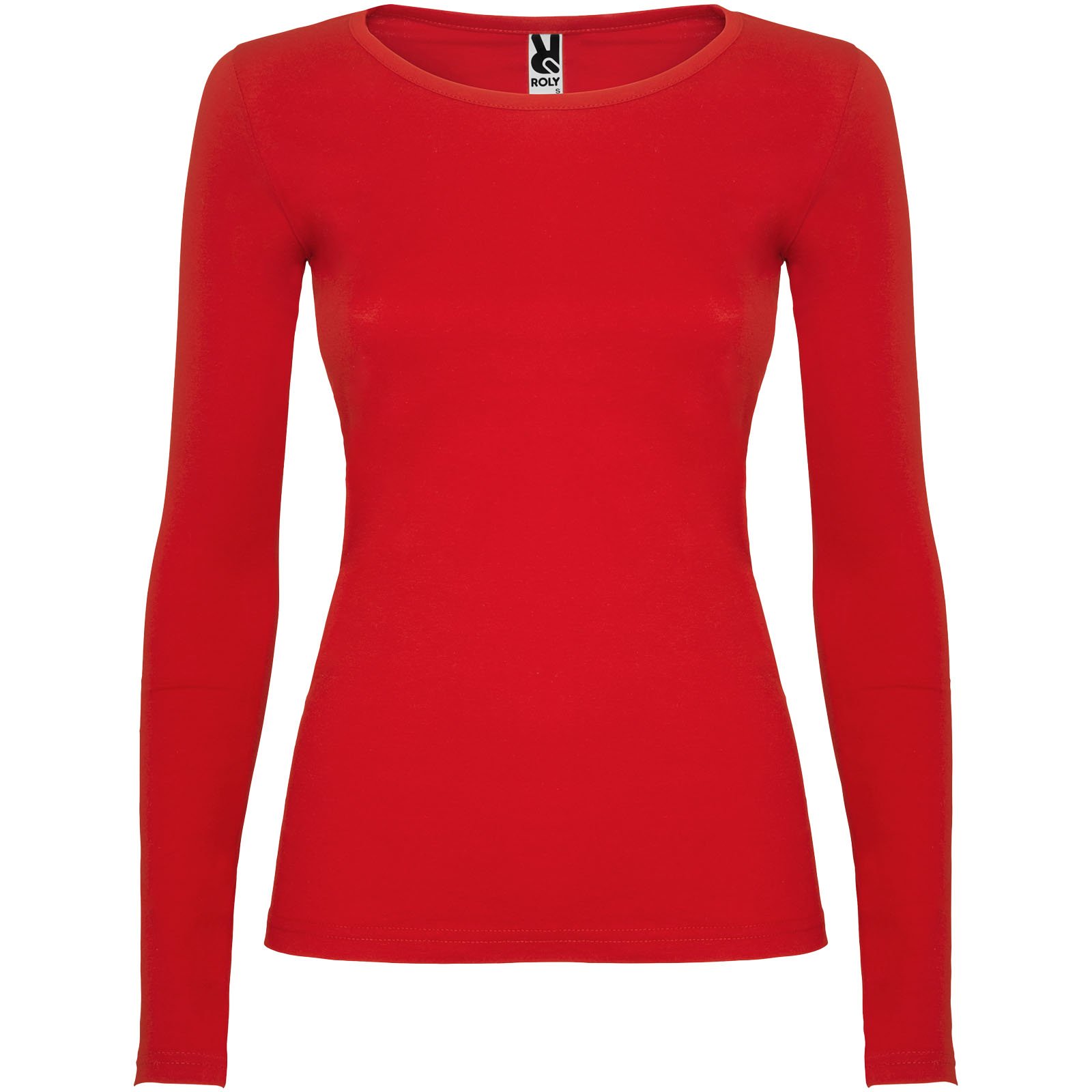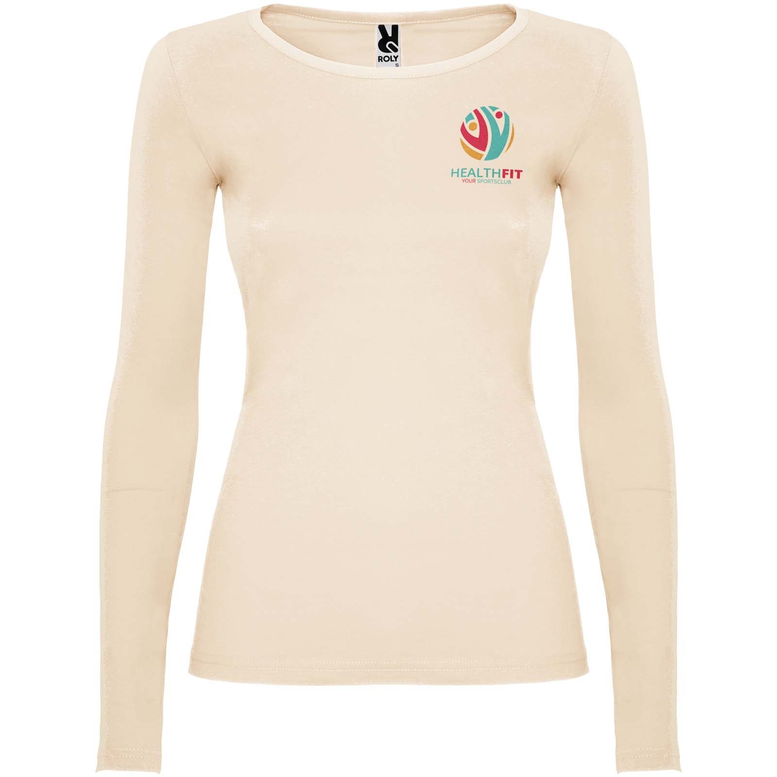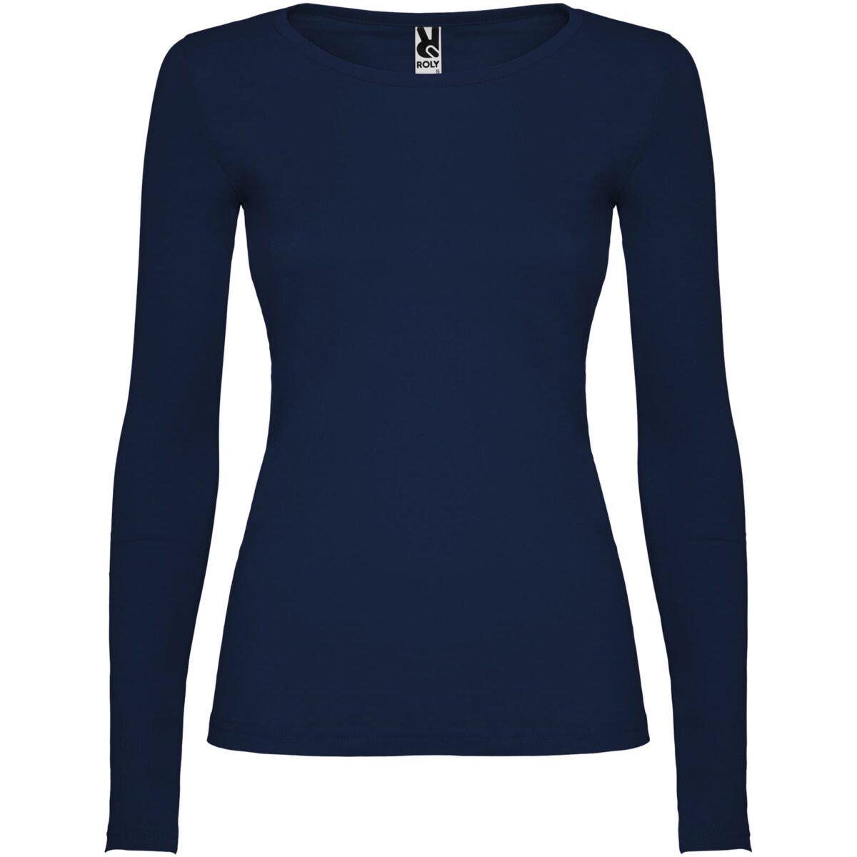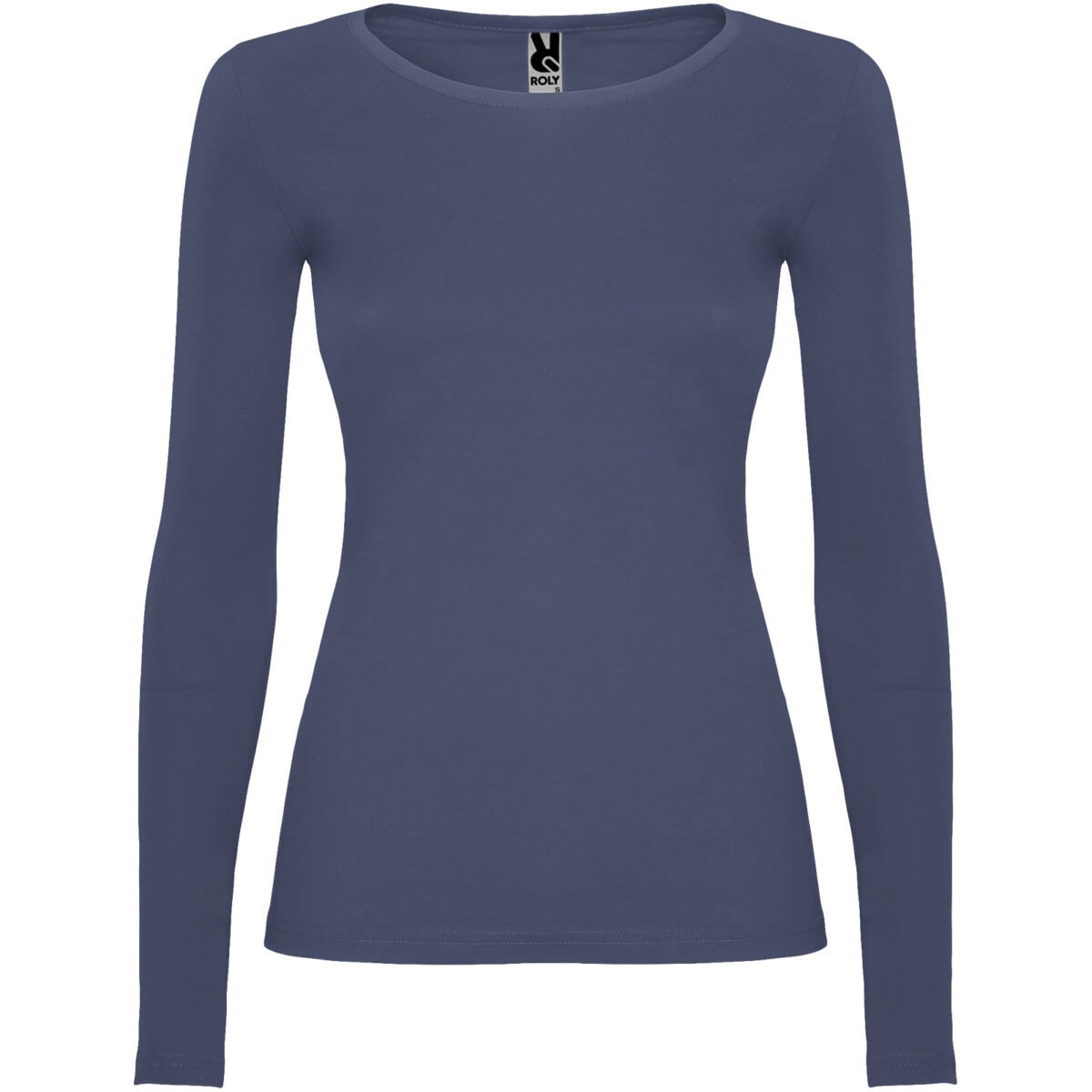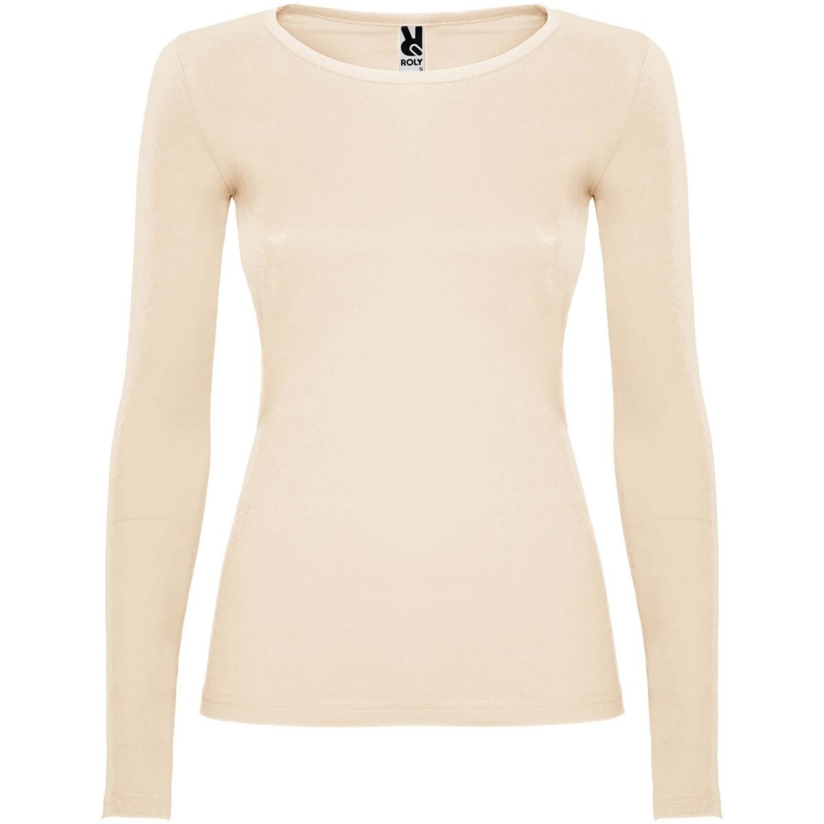 T-shirt semi-ajusté à manches longues avec col finement bordé. Pas de manchettes. Coutures latérales. Étiquette détachable.