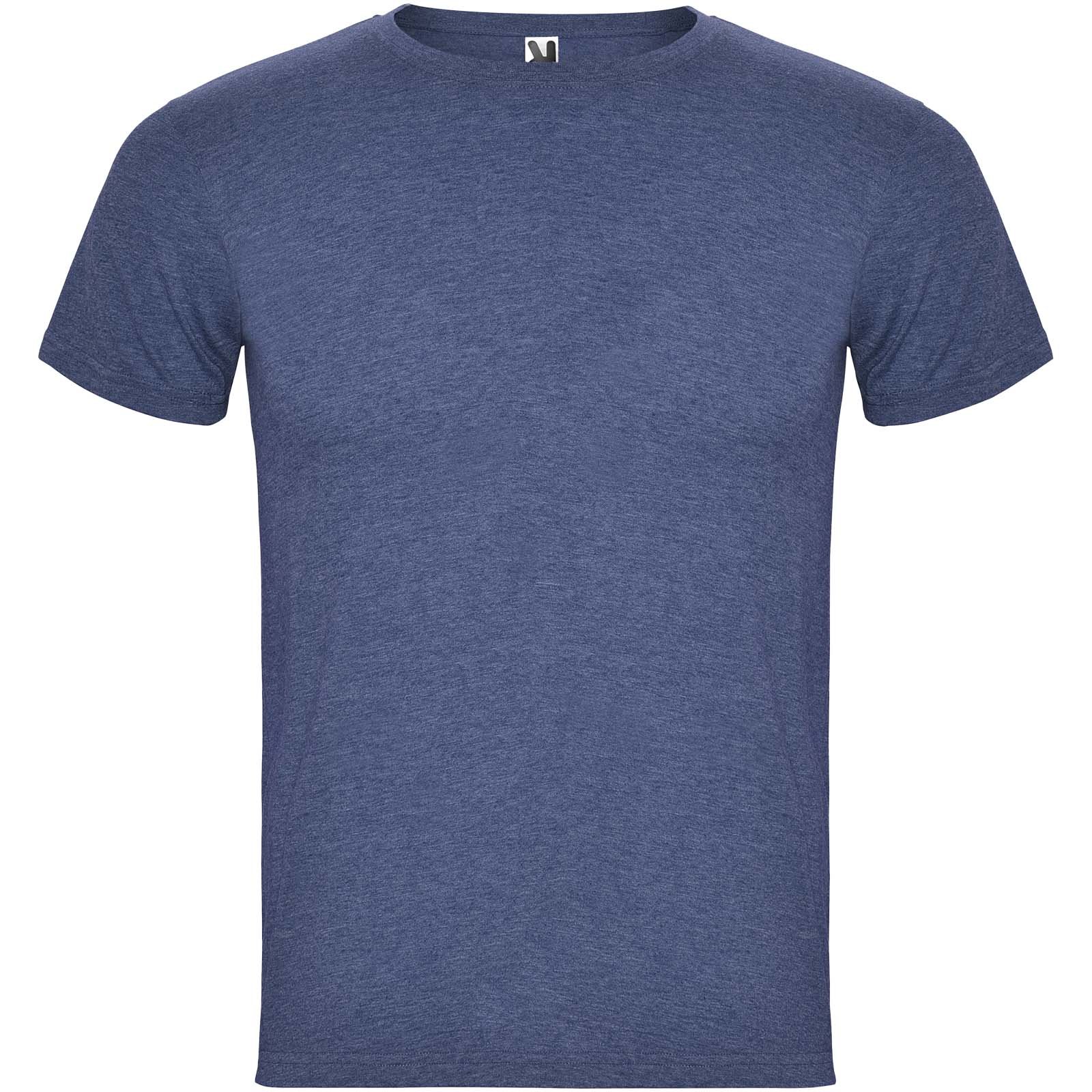 T-shirt à manches courtes avec effet chiné. Col rond en côtes 1×1 avec bande de propreté renforcées à l’intérieur. Tissu tubulaire. Étiquette détachable.