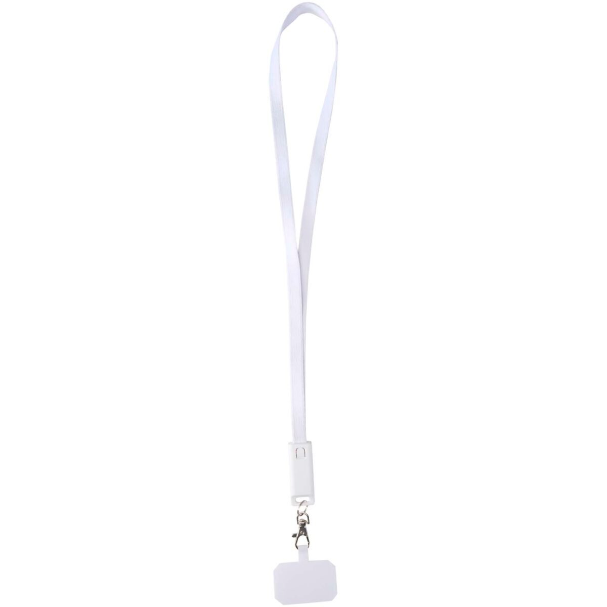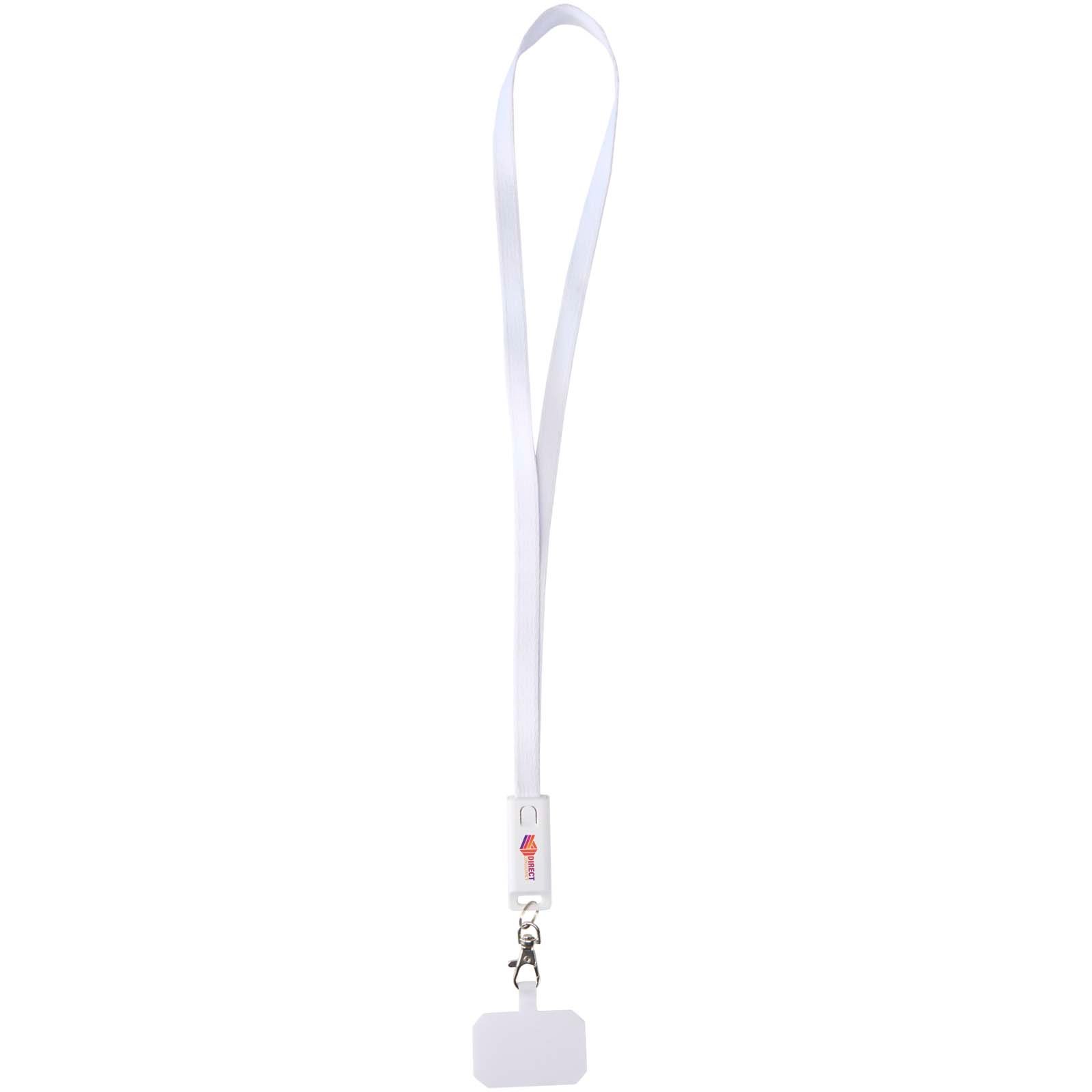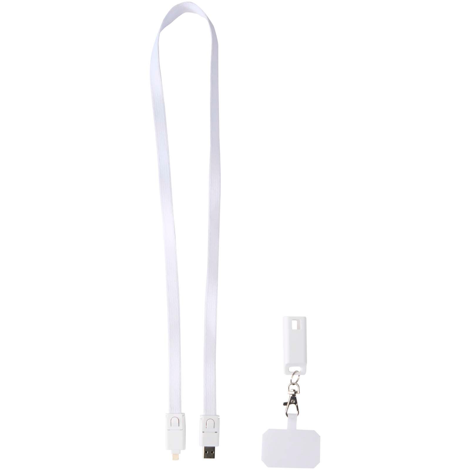 Tour de cou pour smartphone Franz en plastique recyclé avec synchronisation des données intégrée et câble 5 en 1 pour charge rapide de 65 W