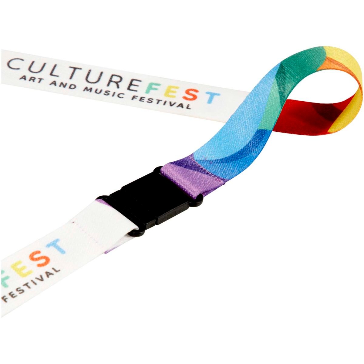 Tour de cou pour sublimation rPET avec bande rPET, porte-clés et boucle avec fermoir amovible pour éliminer les risques d’étouffement. Permet d’accrocher un badge nominatif, une carte d’identité ou des clés. Disponible en 4 largeurs différentes : 10, 15, 20 et 25 mm.