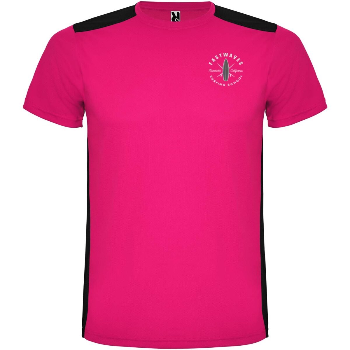 Tissu technique et respirant, facile à sécher. Col ras-du-cou. Confectionné avec deux tissus en polyester sur le dos et les épaules. Tissu œil d’oiseau à l’avant et tissu en maille 3D respirant à l’arrière. Tissu conçu pour absorber l’humidité. Point arrière décoratif en zigzag sur les côtés et les épaules. Patron du dos légèrement plus long. Étiquette détachable.