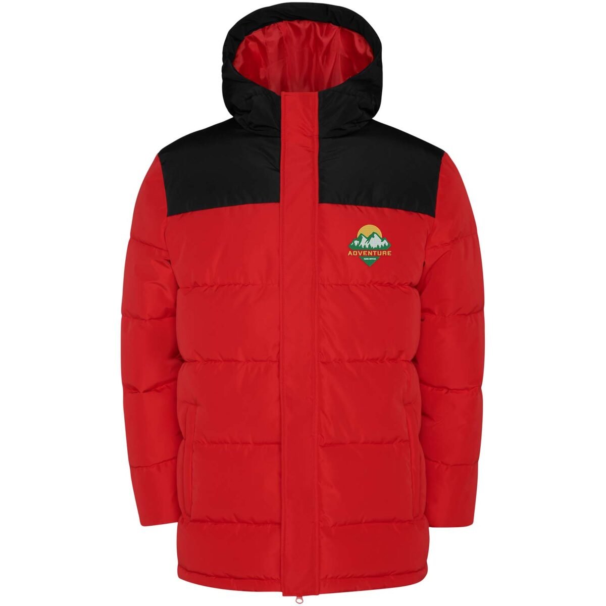 Veste matelassée avec capuche fixe. Fermeture à glissière sur le devant avec rabat. Protège-menton. Deux poches latérales avec fermeture zippée. Poignets élastiques.